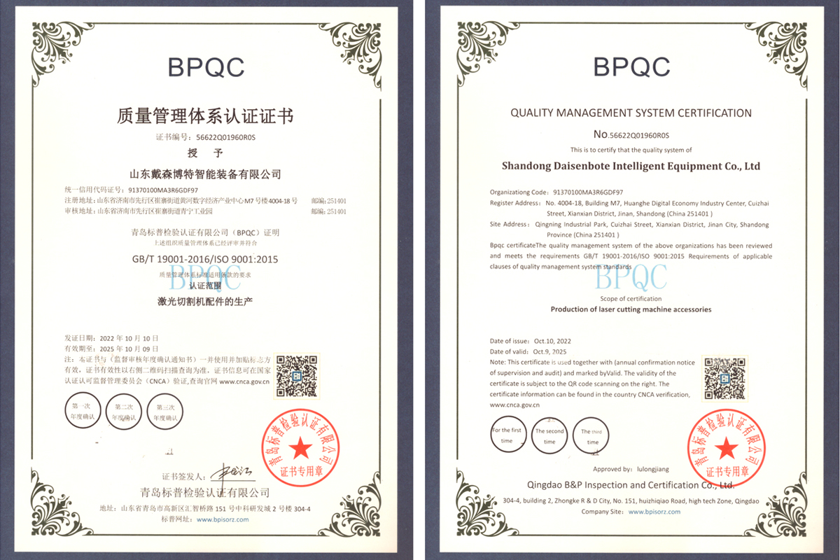 戴森博特秉承“外圆内方”的企业文化。向外,真诚和善、服务周全;向内, 严于准则、潜心技术研究和产品质量提升。协助多家激光设备生产厂家实现切管机 从零到一的突破!我们愿携手国内外激光切管机厂家合作共赢,助力激光切管机实 现重大突破!