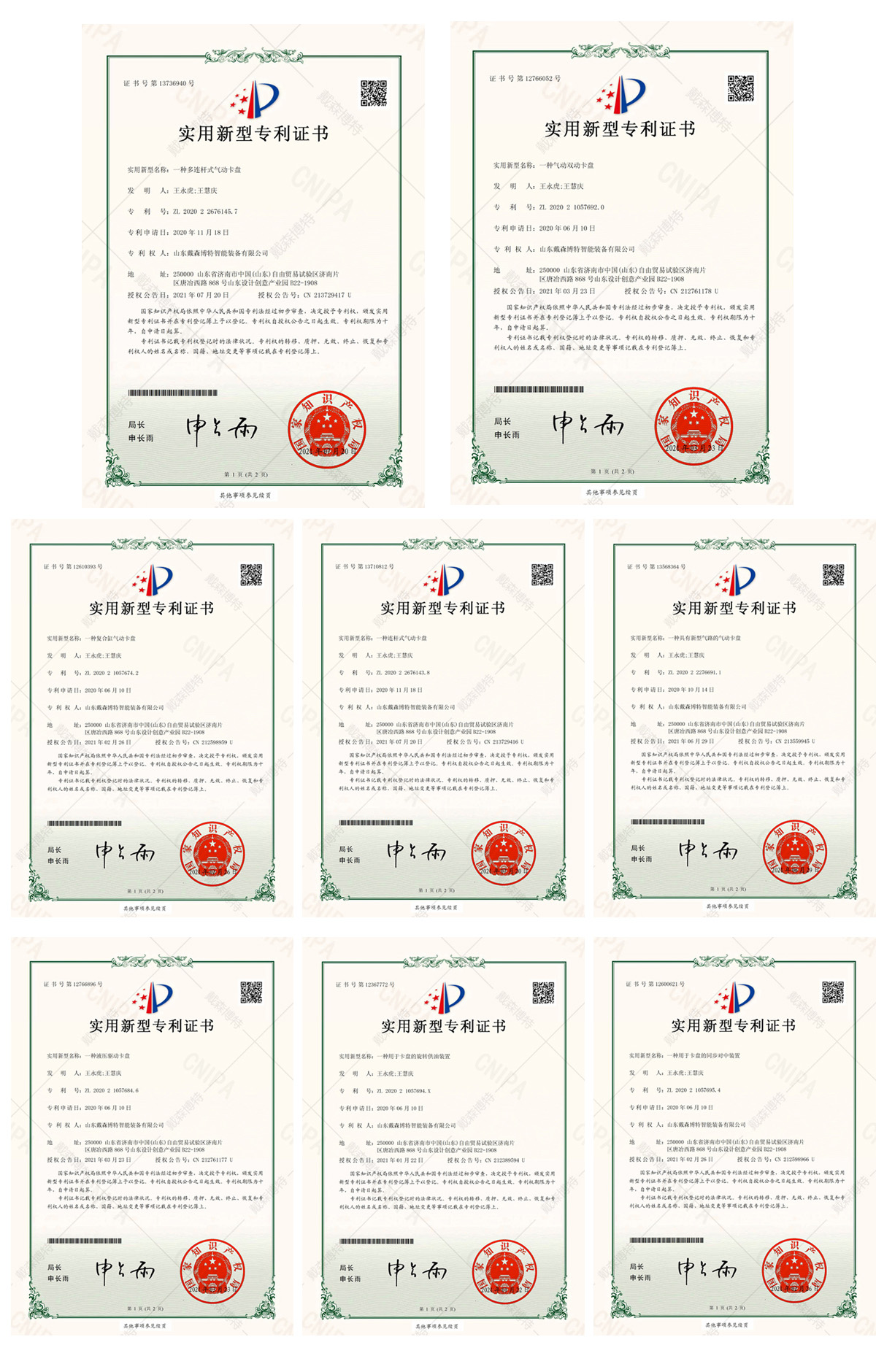 自2019年成立以来,戴森博特坚持自主研发与创新,取得五十余项技术专利, 目前已经形成年生产能力2000套的规模。生产的激光卡盘结构稳定、安装方便,适 用于专业激光切管机、管板一体机等激光切割设备。生产的卡盘具有精准加持、快 速响应、高效运动等性能特点。